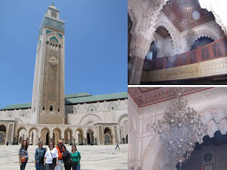 Reunidos todos poco antes de la hora prevista en el Marina Lounge, a la 01:30 en punto de la tarde salimos en fila con otros participantes del crucero hacia el autobús No. 24 donde el guía local nos lleva a un City Tour por los lugares más emblemáticos de Casablanca, y por supuesto, estando cerca del puerto sobre un promontorio artificial en la playa atlántica, comenzar la visita por la Gran Mezquita de HASSAN II, en un día bien soleado y con clima mediterráneo, no sin antes mostrarnos a nuestra izquierda el Ricks Café , inspirado en la película "Casablanca", protagonizada Humphrey Bogart e Ingrid Bergman en 1942, restaurante copiado por una norteamericana fanática del cine, Kathy Kruger, una antigua diplomática estadounidense y que bien me hubiera gustado bajar a tomar un vinito, pero quedará para otra ocasión, quizás cuando vuelva con mis hijos y nietos .