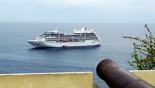 A un lado del cementerio queda el nuevo Hotel Santa Teresa, estructura de 4 pisos que ya habíamos divisado desde el barco esta mañana cuando estábamos anclando. Un poco más y llegamos hasta los cañones de San Antonio, de la época napoleónica, que como notarán en las fotos, parecen estar apuntando a nuestro barco.