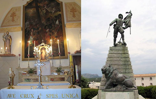 La próxima parada es frente a una pequeña pero muy pintoresca capilla, San Juan Bautista, continuando por entre callejones para entrar en otra capilla, iglesias hay bastantes, la de Padre Pío, o al menos así creo que se llama, para un momento de reflexión y continuar nuestra caminata de nuevo hacia otra colina o parte más alta con la plaza y monumento de 1963 Bir-Haken, dedicado a la Legión Extranjera, desde donde las panorámicas también son excelente y aprovechamos otra sesión de fotos.