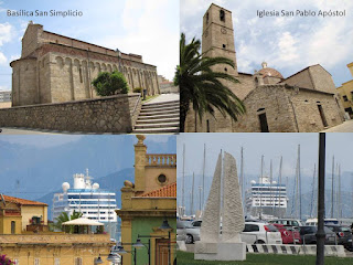 Tiendas y cafés con terrazas es lo que predominan, así que sin apuro llegamos hasta la línea férrea y regresamos por las calles transversales sin muchas cosas que llamen la atención salvo la hermosa Basílica de San Simplicio, antigua iglesia tallada en granito y dedicada a San Simplicio, principal monumento religioso del noreste de Cerdeña y La Iglesia San Pablo Apóstol, cerrada como todas las tiendas entre 1 y 5, así que sin pena de gloria y tras un breve momento de ligera llovizna, nos fuimos para el barco sin saber el destino del resto del grupo y después de tomarnos una refrescante cerveza.