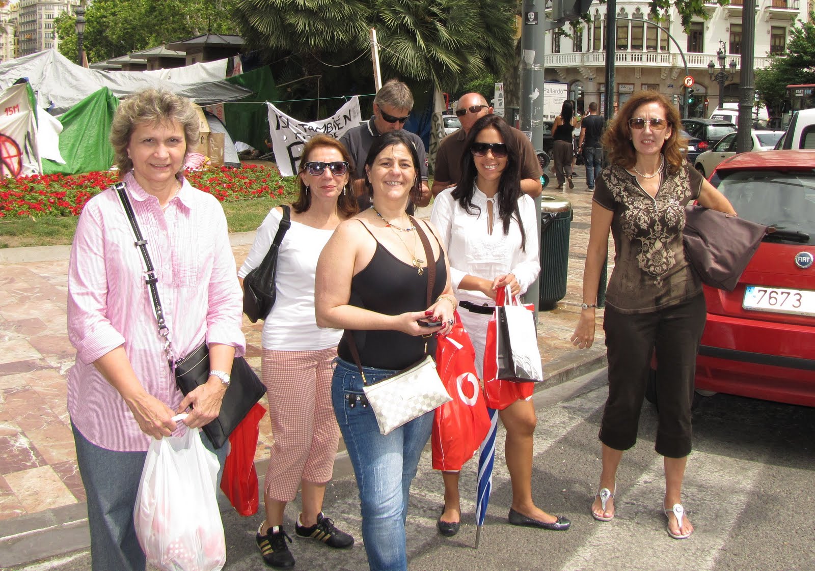Utilizamos el transporte del barco hasta el centro de Valencia, para de ahí caminar hasta la Plaza de la Vírgen y todo el conjunto de la Catedral con sus típicos alrededores. La plaza del Ayuntamiento con la oficina de Correos enfrente y manifestaciones singulares de los llamados "indignados".